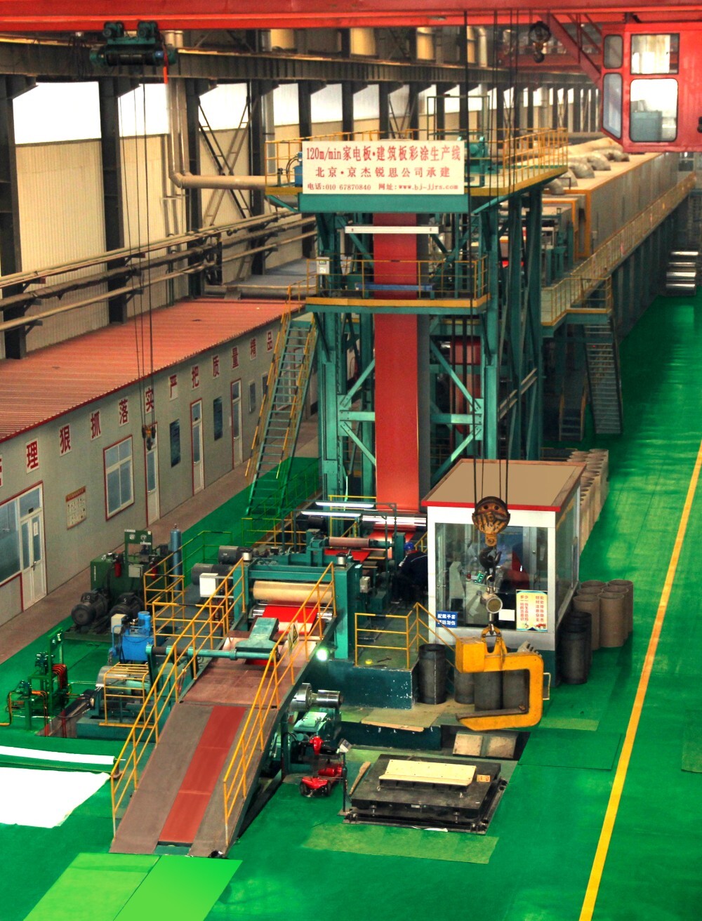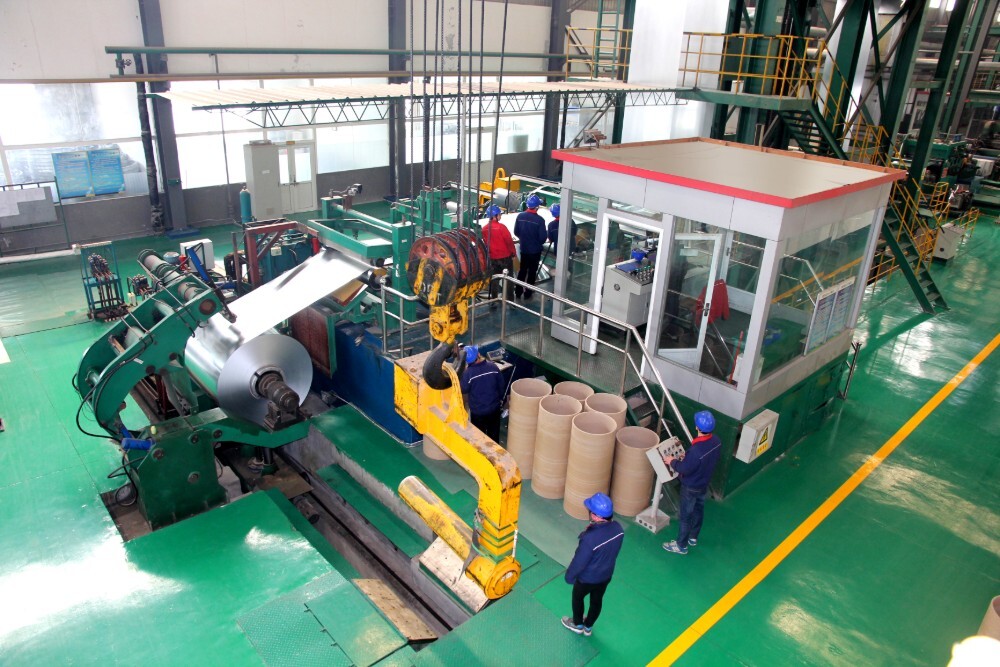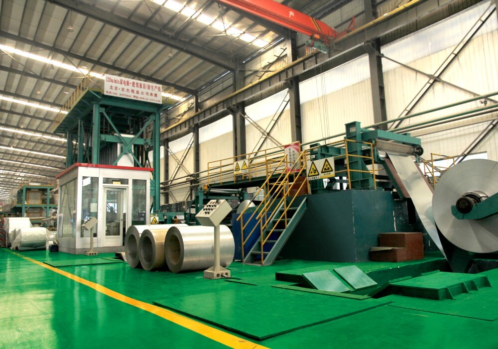 The production capacity of color-coated plate production line is 240,000 tons. The production line can produce high-end building plates, automobile plates, home appliance plates, solar panels, thick coating corrosion-resistant color plates, textured plates, velvet panels, color plates for doors and windows, etc. All products have the function of cold-coating protective film. Coating types: polyester, polyurethane, epoxy, PVC, fluorocarbon and other coatings. High weather-resistant color-coated plates with a service life of more than 10 years can be provided according to customer requirements.