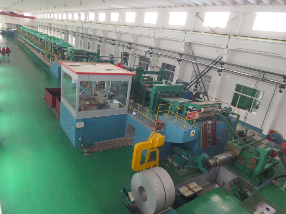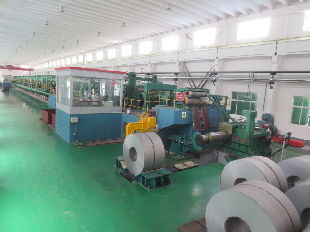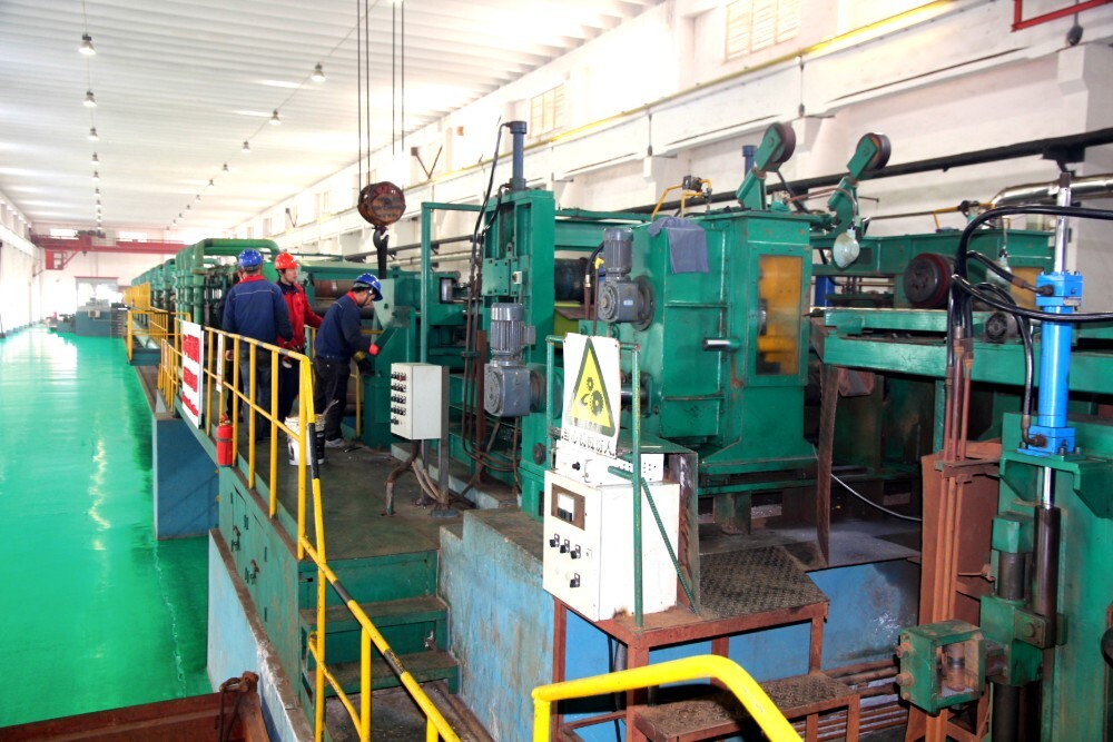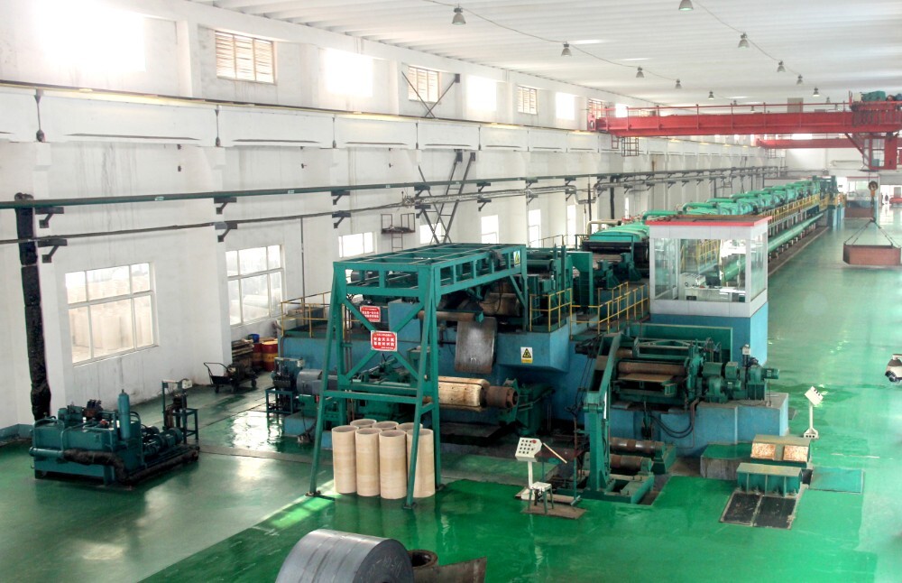 The production capacity of 1250mm and 1450mm single-frame production lines is 200,000 tons and 250,000 tons respectively. It is equipped with imported laser velocimeter, X-ray thickness gauge, plate type meter and other advanced detection systems. The rolling mill has high rigidity and can produce ordinary carbon, high carbon, alloy steel, etc. The product specifications are (0.15-1.5) mm × (800-1250) mm.