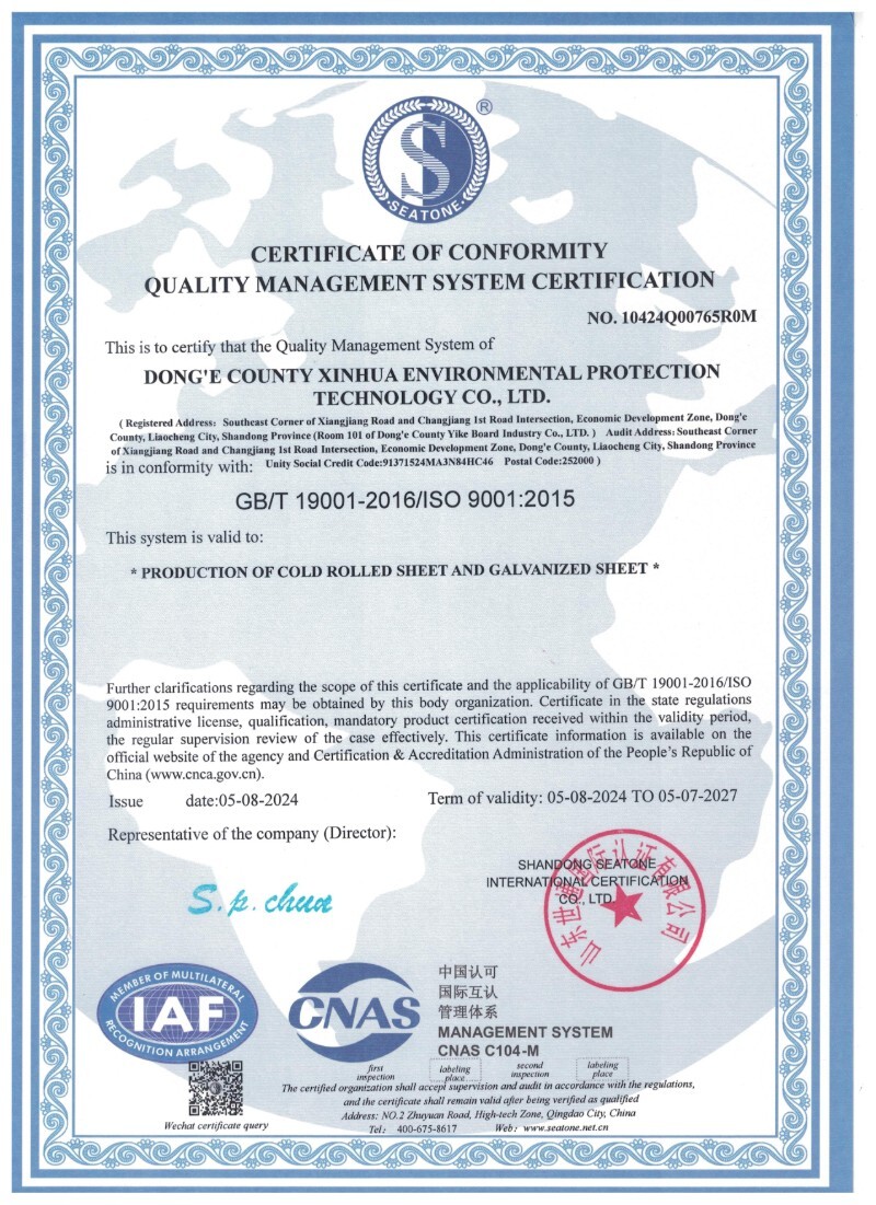 The company has a complete quality management system and a quality technical service system with the participation of all employees. It has passed the ISO9001 quality management system certification, ISO14001 environmental management system certification, ISO45001 occupational health and safety management system certification, and has dozens of utility model invention patents.